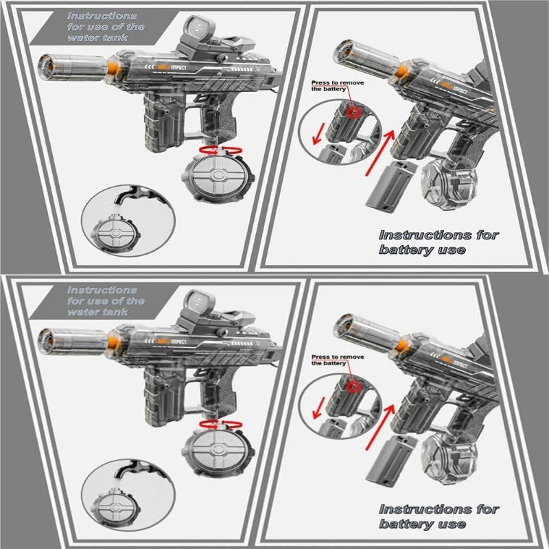 Enjoy rapid, continuous water streams powered by an electric drive. The upgraded pump delivers strong pressure for outdoor battles at distances of up to 8 meters.
